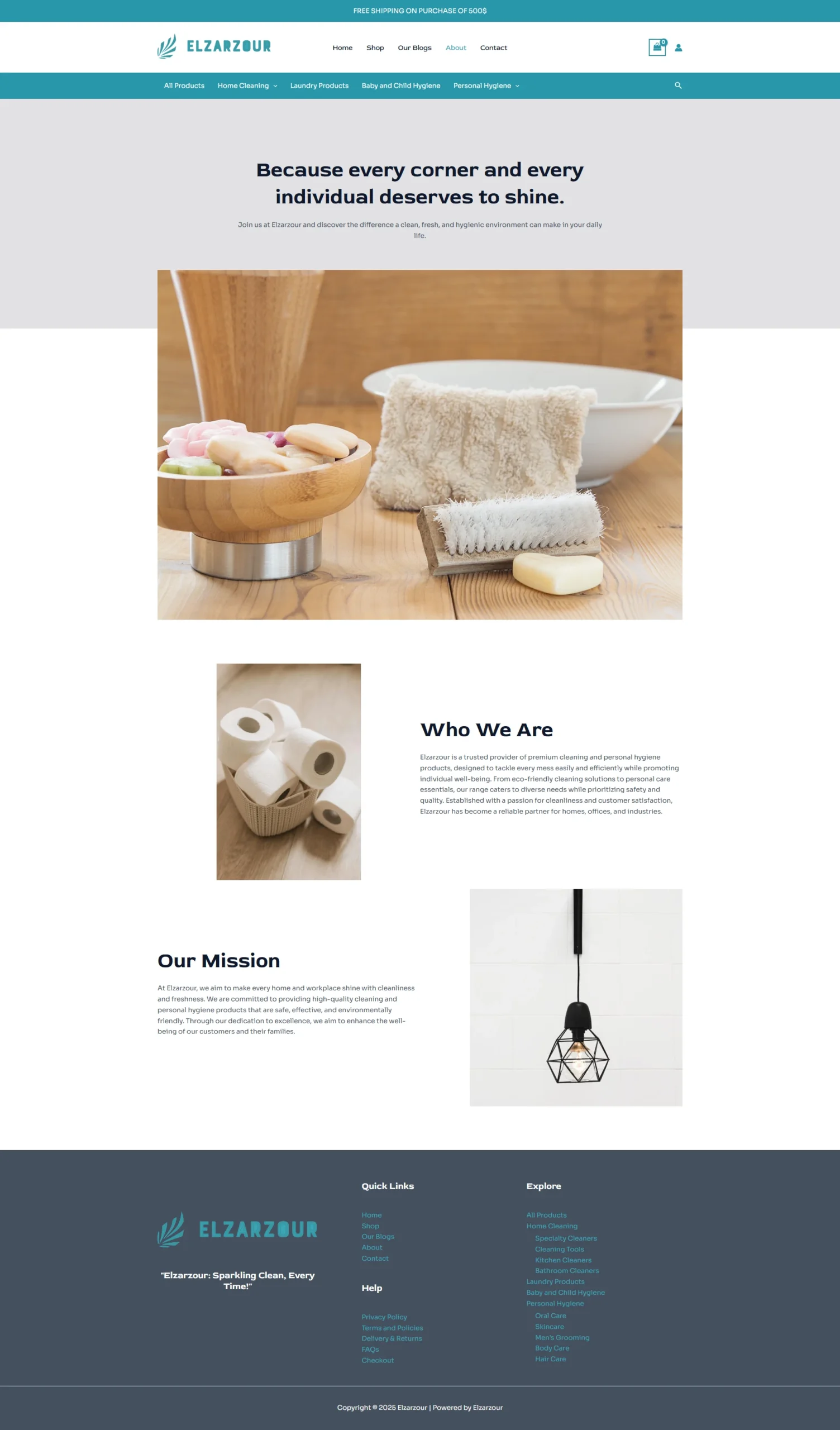 Elzarzour is a trusted provider of premium cleaning and personal hygiene products, designed to tackle every mess easily and efficiently while promoting individual well-being. From eco-friendly cleaning solutions to personal care essentials, our range caters to diverse needs while prioritizing safety and quality. Established with a passion for cleanliness and customer satisfaction, Elzarzour has become a reliable partner for homes, offices, and industries.